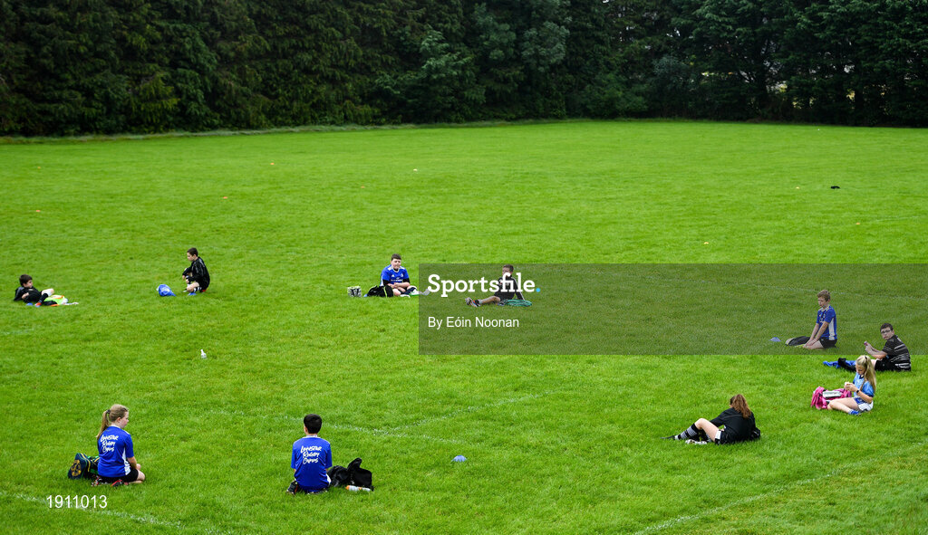 30 July 2020; Participants break for lunch during the Bank of Ireland Leinster Rugby Summer Camp at Dundalk RFC in Louth. Photo by Eóin Noonan/Sportsfile