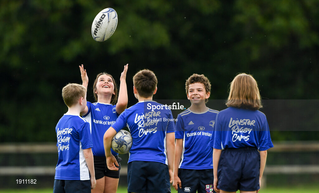 31 July 2020; Camp participants from left Jamie Duggan, age 10, Elouise Connolly, age 9, Ruaraidh McArdle Moore, age 9, Culi Langan Given, age 9, and Ciara Byrne, age 10, during a Bank of Ireland Leinster Rugby Summer Camp at Coolmine RFC in Dublin. Photo by Matt Browne/Sportsfile
