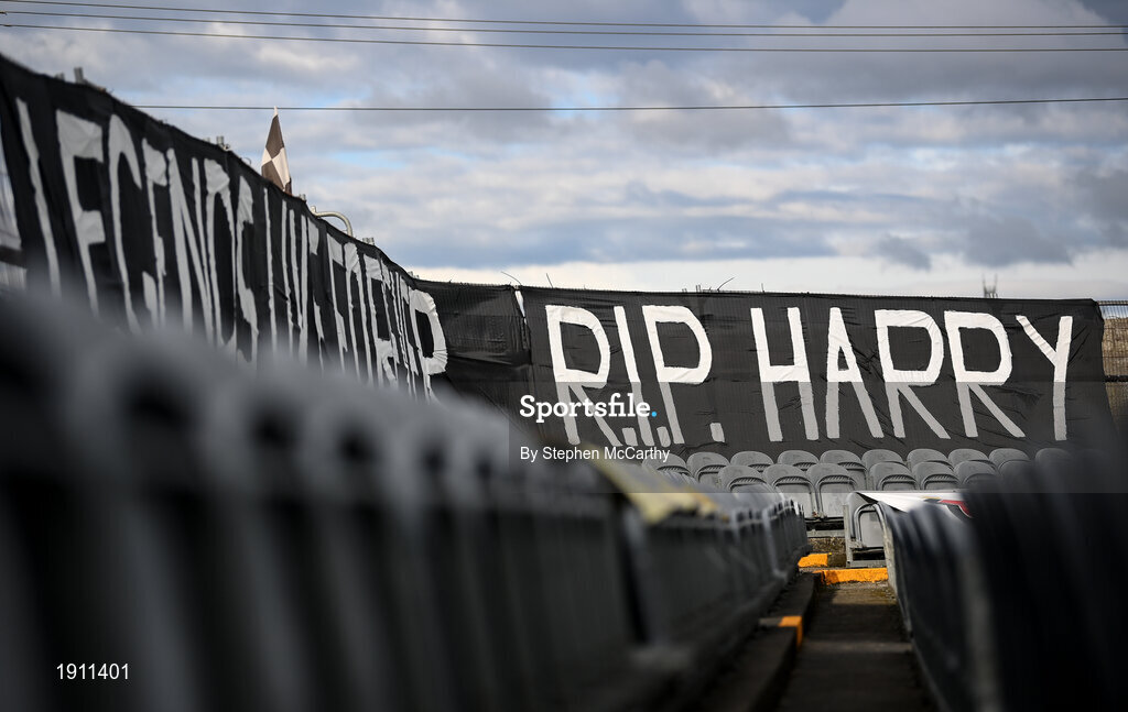 31 July 2020; Flags at Oriel Park in tribute to the late Dundalk groundsman and videographer Harry Taaffe prior to the SSE Airtricity League Premier Division match between Dundalk and St Patrick's Athletic at Oriel Park in Dundalk, Louth. The SSE Airtricity League Premier Division made its return today after 146 days in lockdown but behind closed doors due to the ongoing Coronavirus restrictions. Photo by Stephen McCarthy/Sportsfile