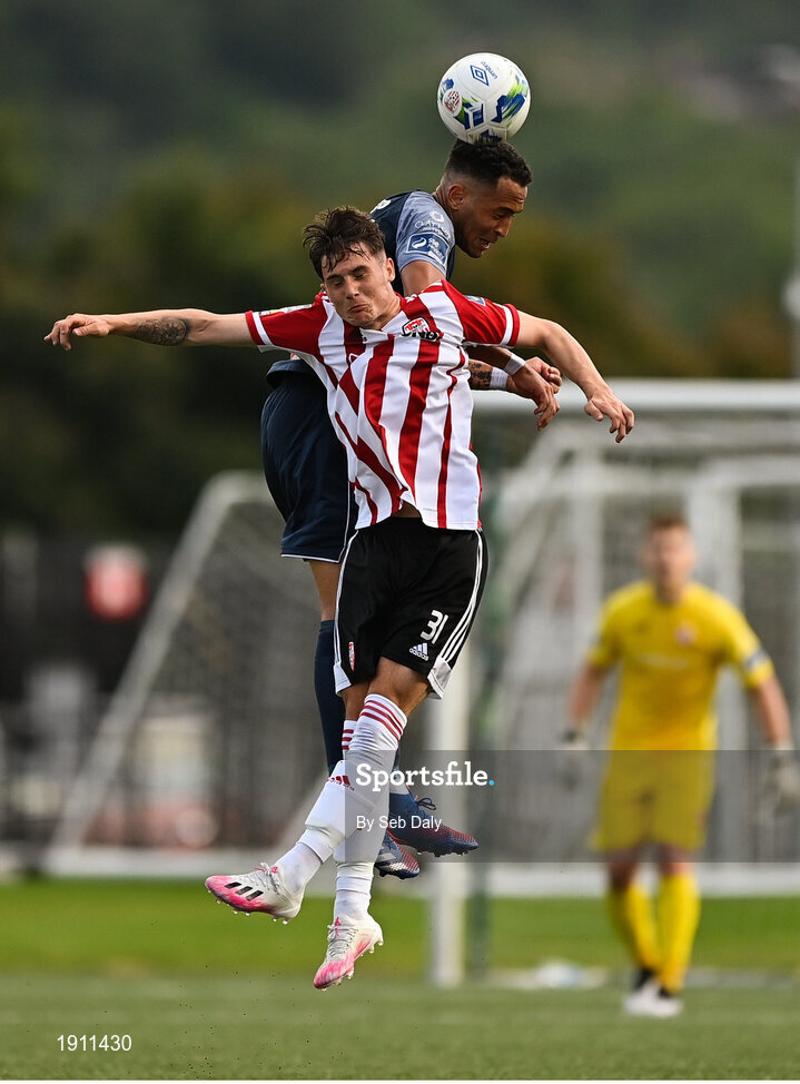 31 July 2020; Patrick Ferry of Derry City in action against Will Seymour of Sligo Rovers during the SSE Airtricity League Premier Division match between Derry City and Sligo Rovers at the Ryan McBride Brandywell Stadium in Derry. The SSE Airtricity League Premier Division made its return today after 146 days in lockdown but behind closed doors due to the ongoing Coronavirus restrictions. Photo by Seb Daly/Sportsfile