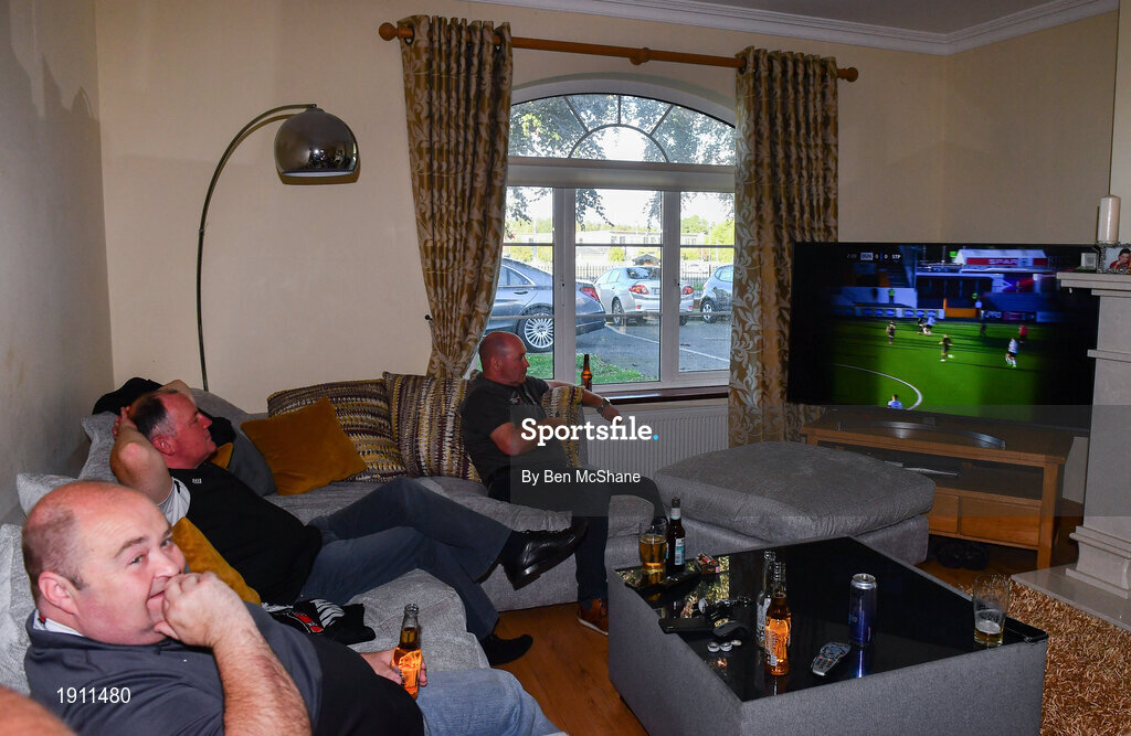 31 July 2020; Dundalk supporters watch their side's SSE Airtricity League Premier Division match against St Patrick's Athletic at the home of former Dundalk co-owner Paul Brown in Dundalk, Louth. The match was played behind closed doors due to the ongoing COVID-19 pandemic. Photo by Ben McShane/Sportsfile