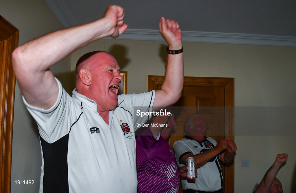 31 July 2020; Former Dundalk co-owner Paul Brown celebrates after Patrick Hoban of Dundalk scored his side's first goal as he watches his side's SSE Airtricity League Premier Division match against St Patrick's Athletic at his home in Dundalk, Louth. The match was played behind closed doors due to the ongoing COVID-19 pandemic. Photo by Ben McShane/Sportsfile