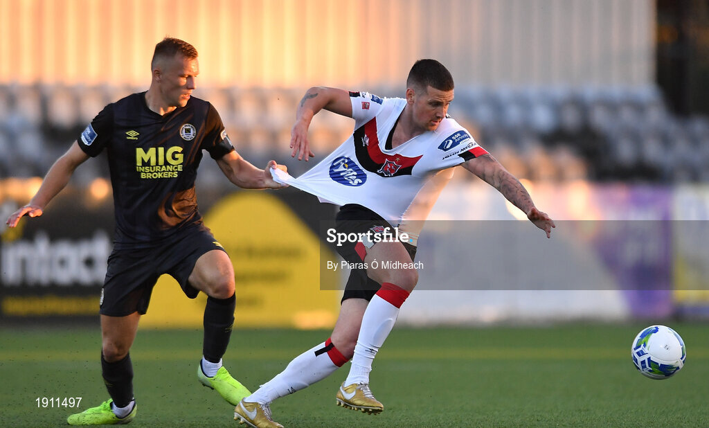 31 July 2020; Patrick McEleney of Dundalk has his jersey pulled by Jamie Lennon of St Patrick's Athletic during the SSE Airtricity League Premier Division match between Dundalk and St Patrick's Athletic at Oriel Park in Dundalk, Louth. The SSE Airtricity League Premier Division made its return today after 146 days in lockdown but behind closed doors due to the ongoing Coronavirus restrictions. Photo by Piaras Ó Mídheach/Sportsfile
