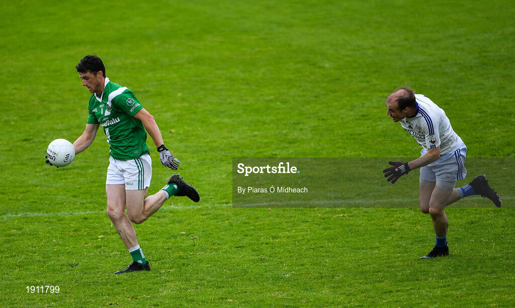 1 August 2020; Conor Bohan of Moycullen gets past Keith Ó Donnchadha of Mícheál Breathnach's during the Galway County Senior Football Championship Group 2 Round 1 match between Moycullen and Mícheál Breathnach's at Pearse Stadium in Galway. GAA matches continue to take place in front of a limited number of people in an effort to contain the spread of the Coronavirus (COVID-19) pandemic. Photo by Piaras Ó Mídheach/Sportsfile