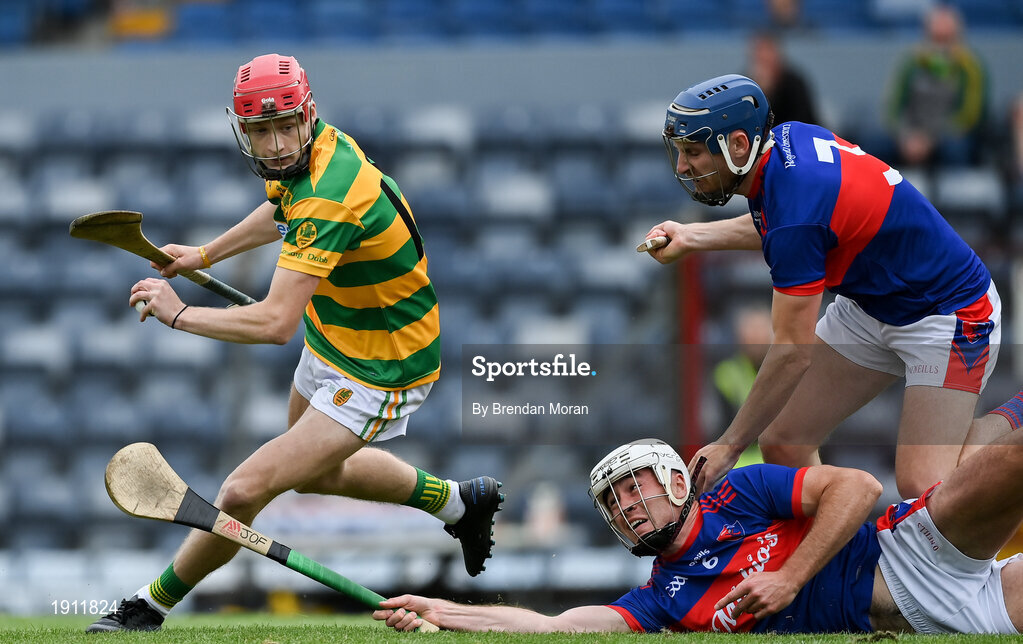 1 August 2020; Alan Connolly of Blackrock in action against Cormac Dooley and James O'Flynn of Erin's Own during the Cork County Senior Hurling Championship Group B Round 1 match between Blackrock and Erin's Own at Páirc Uí Rinn in Cork. GAA matches continue to take place in front of a limited number of people due to the ongoing Coronavirus restrictions. Photo by Brendan Moran/Sportsfile