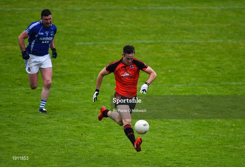 1 August 2020; Jack Ó Gaoithín of An Cheathrú Rua gets past John Martin of Milltown during the Galway County Senior Football Championship Group 4B Round 1 match between An Cheathrú Rua and Milltown at Pearse Stadium in Galway. GAA matches continue to take place in front of a limited number of people in an effort to contain the spread of the Coronavirus (COVID-19) pandemic. Photo by Piaras Ó Mídheach/Sportsfile