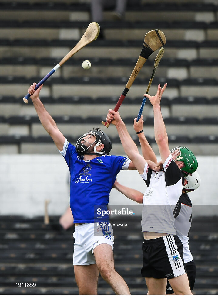 1 August 2020; Robert Moran of Erins Own in action against Ger Malone and Robin Davis of Mullinavat during the Kilkenny County Senior Hurling League Group B match between Erins Own and Mullinavat at UPMC Nowlan Park in Kilkenny. GAA matches continue to take place in front of a limited number of people due to the ongoing Coronavirus restrictions. Photo by Matt Browne/Sportsfile