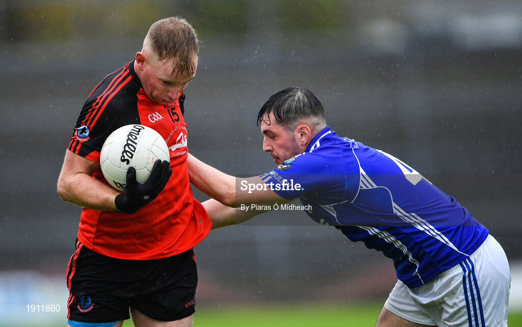 1 August 2020; Paudi MacCormac of An Cheathrú Rua is tackled by Keith Mannion of Milltown during the Galway County Senior Football Championship Group 4B Round 1 match between An Cheathrú Rua and Milltown at Pearse Stadium in Galway. GAA matches continue to take place in front of a limited number of people in an effort to contain the spread of the Coronavirus (COVID-19) pandemic. Photo by Piaras Ó Mídheach/Sportsfile