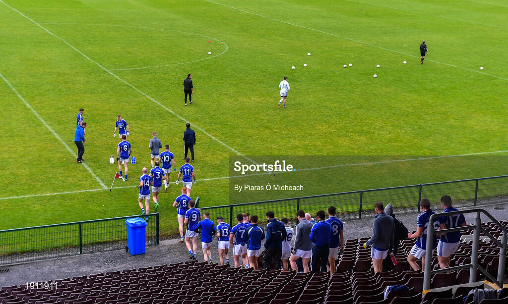 1 August 2020; Milltown players make their way to the pitch after getting togged out in the stand before the Galway County Senior Football Championship Group 4B Round 1 match between An Cheathrú Rua and Milltown at Pearse Stadium in Galway. GAA matches continue to take place in front of a limited number of people in an effort to contain the spread of the Coronavirus (COVID-19) pandemic. Photo by Piaras Ó Mídheach/Sportsfile