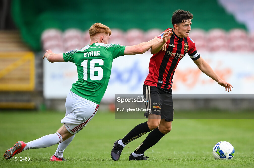 2 August 2020; Keith Buckley of Bohemians in action against Alec Byrne of Cork City during the SSE Airtricity League Premier Division match between Cork City and Bohemians at Turners Cross in Cork. The SSE Airtricity League Premier Division made its return this weekend after 146 days in lockdown but behind closed doors due to the ongoing Coronavirus restrictions. Photo by Stephen McCarthy/Sportsfile