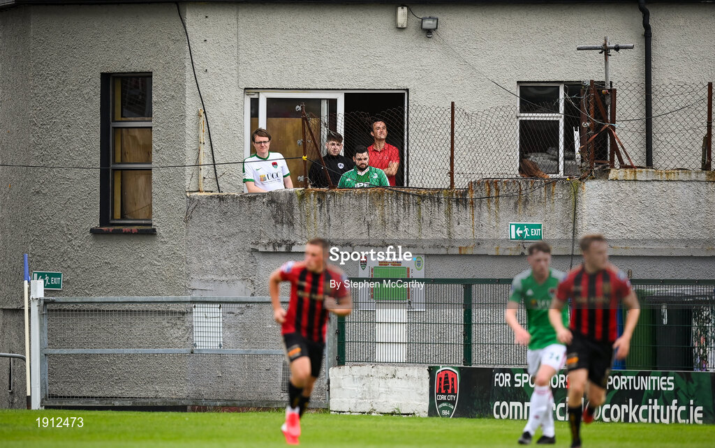 2 August 2020; Cork City supporters watch on from the roof of The Corner Flag pub during the SSE Airtricity League Premier Division match between Cork City and Bohemians at Turners Cross in Cork. The SSE Airtricity League Premier Division made its return this weekend after 146 days in lockdown but behind closed doors due to the ongoing Coronavirus restrictions. Photo by Stephen McCarthy/Sportsfile