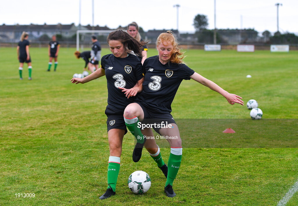 4 August 2020; Laura Shine, left, and Aoife Cronin during Republic of Ireland Women's Under-17 Training Camp at Tramore AFC in Waterford. Photo by Piaras Ó Mídheach/Sportsfile