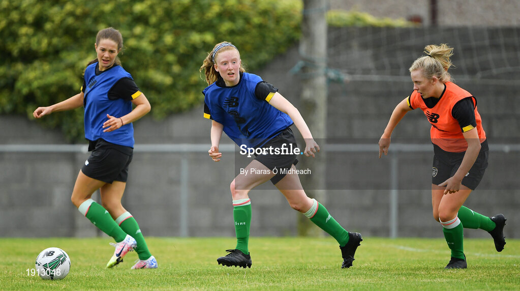 4 August 2020; Therese Kinnevey, centre, Rebecca Watkins, left, and Kerry Brown during Republic of Ireland Women's Under-17 Training Camp at Tramore AFC in Waterford. Photo by Piaras Ó Mídheach/Sportsfile