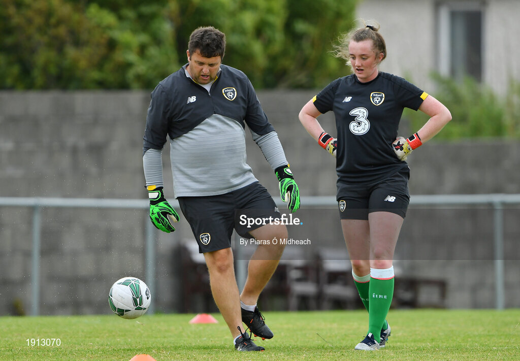 4 August 2020; Goalkeeper coach David Rooney with Leah Hayes during Republic of Ireland Women's Under-17 Training Camp at Tramore AFC in Waterford. Photo by Piaras Ó Mídheach/Sportsfile