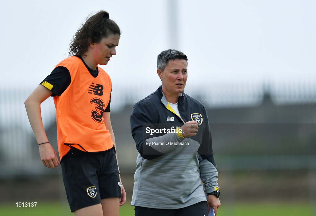 4 August 2020; Maura Reynolds with assistant coach Irene Hehir during Republic of Ireland Women's Under-17 Training Camp at Tramore AFC in Waterford. Photo by Piaras Ó Mídheach/Sportsfile