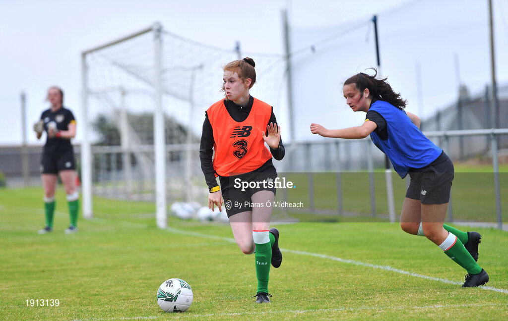 4 August 2020; Chloe McCarthy, left, and Laura Shine during Republic of Ireland Women's Under-17 Training Camp at Tramore AFC in Waterford. Photo by Piaras Ó Mídheach/Sportsfile
