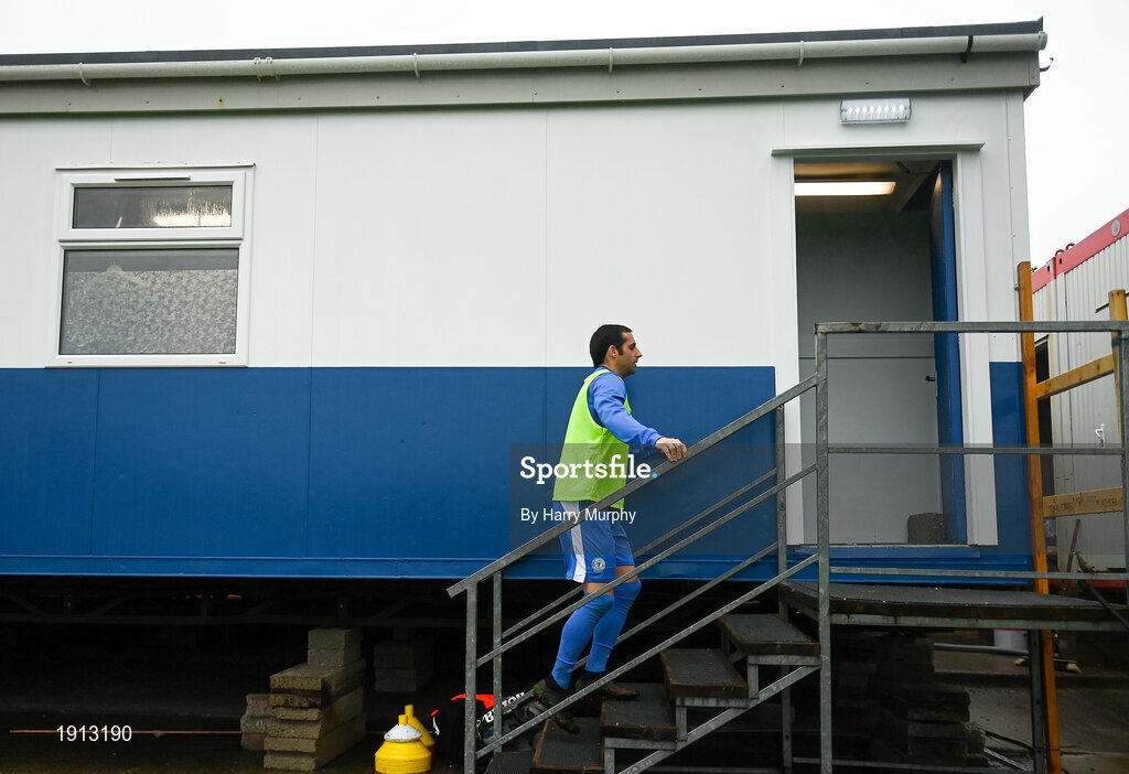4 August 2020; Gareth Harkin of Finn Harps walks into the temoporary dress-room at half-time of the SSE Airtricity League Premier Division match between Finn Harps and Shelbourne at Finn Park in Ballybofey, Donegal. Photo by Harry Murphy/Sportsfile