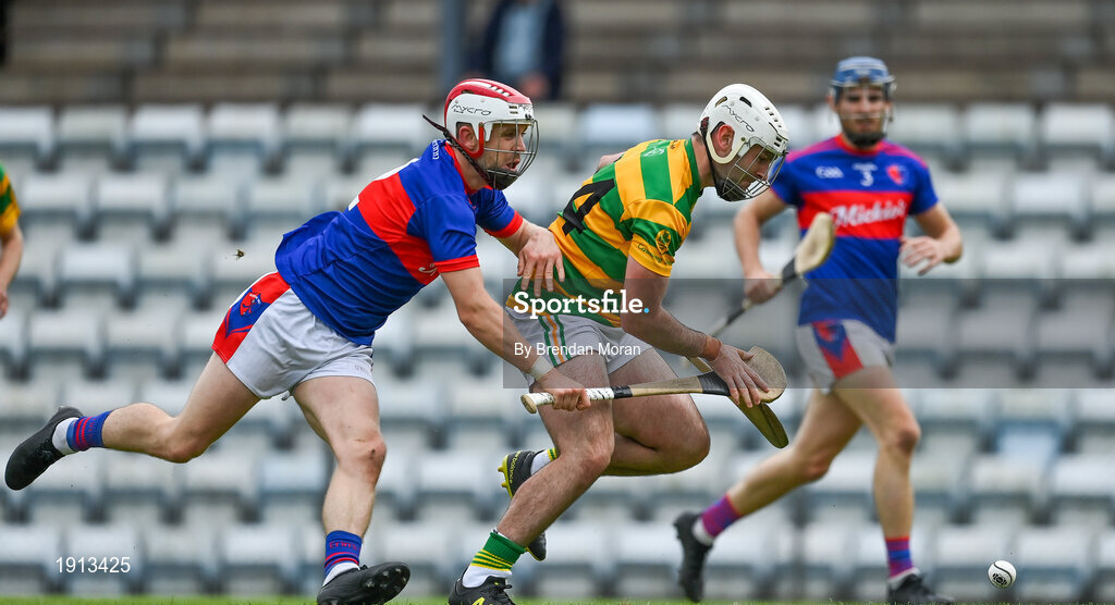 1 August 2020; Kevin O'Keeffe of Blackrock in action against Cian O'Connor of Erin's Own during the Cork County Senior Hurling Championship Group B Round 1 match between Blackrock and Erin's Own at Páirc Uí Rinn in Cork. GAA matches continue to take place in front of a limited number of people due to the ongoing Coronavirus restrictions. Photo by Brendan Moran/Sportsfile