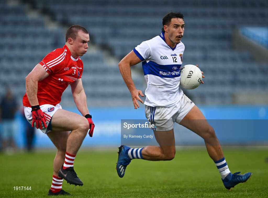 15 August 2020; Shane Carthy of St Vincent's in action against Conor Doran of Clontarf during the Dublin County Senior 1 Football Championship Group 3 Round 3 match between Clontarf and St. Vincent's at Parnell Park in Dublin. Photo by Ramsey Cardy/Sportsfile