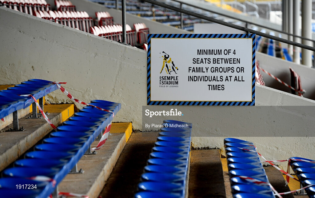 16 August 2020; A general view of signage in the stands at the Tipperary County Senior Hurling Championship Group 3 Round 3 match between Kilruane McDonaghs and Loughmore Castleiney at Semple Stadium in Thurles, Tipperary. Photo by Piaras Ó Mídheach/Sportsfile