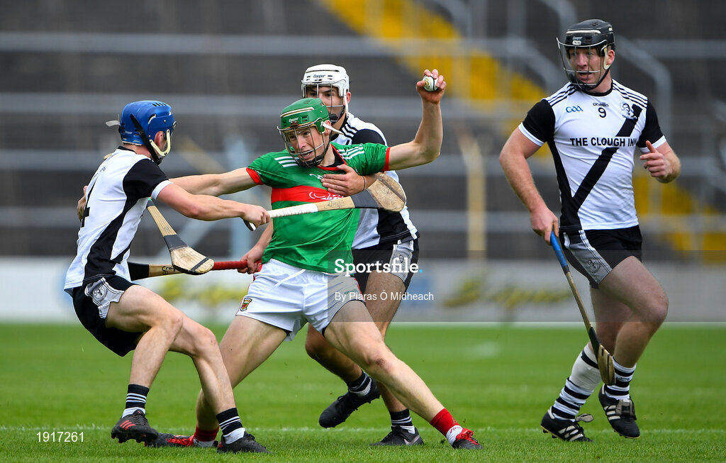 16 August 2020; Brian McGrath of Loughmore-Castleiney in action against Kilruane MacDonagh's players, from left, James Cleary, Craig Morgan, and Séamus Hennessy during the Tipperary County Senior Hurling Championship Group 3 Round 3 match between Kilruane McDonagh's and Loughmore Castleiney at Semple Stadium in Thurles, Tipperary. Photo by Piaras Ó Mídheach/Sportsfile