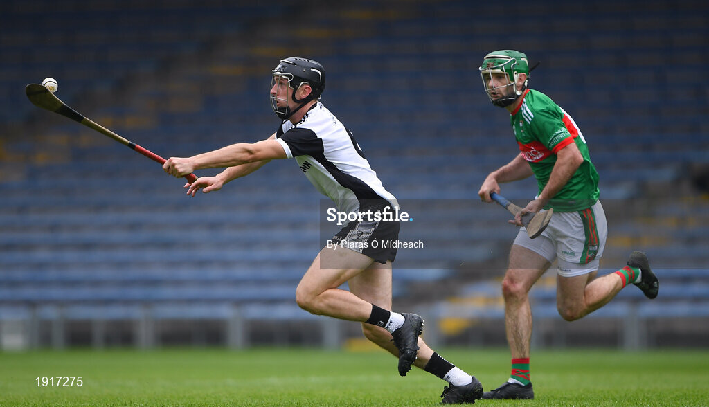 16 August 2020; Darragh Peters of Kilruane MacDonagh's in action against Ciarán McGrath of Loughmore-Castleiney during the Tipperary County Senior Hurling Championship Group 3 Round 3 match between Kilruane McDonagh's and Loughmore Castleiney at Semple Stadium in Thurles, Tipperary. Photo by Piaras Ó Mídheach/Sportsfile