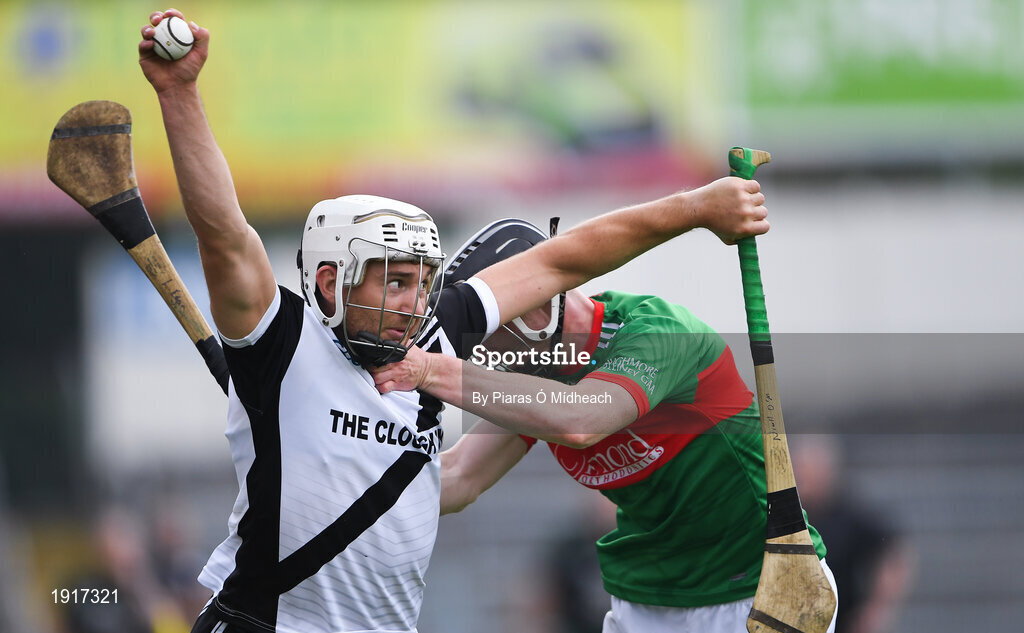 16 August 2020; Niall O'Meara of Kilruane MacDonagh's is tackled by Lorcan Egan of Loughmore-Castleiney during the Tipperary County Senior Hurling Championship Group 3 Round 3 match between Kilruane McDonagh's and Loughmore Castleiney at Semple Stadium in Thurles, Tipperary. Photo by Piaras Ó Mídheach/Sportsfile