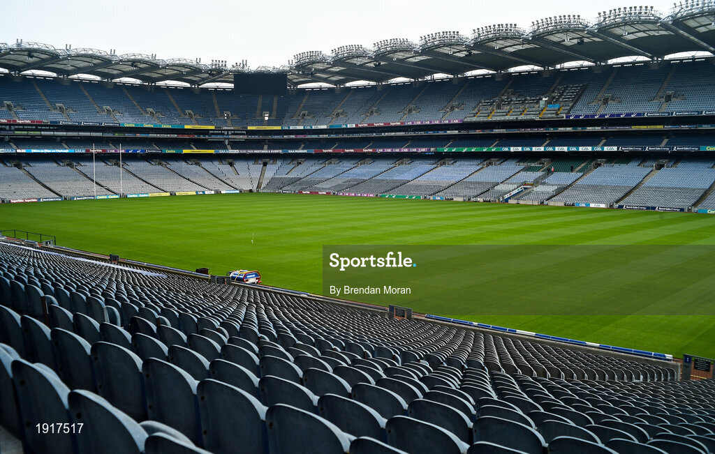 16 August 2020; An empty Croke Park Stadium at the pre-match parade time of 3.23pm on the original scheduled date of the 2020 GAA Hurling All-Ireland Senior Championship Final. Due to current restrictions laid down by the Irish government to prevent the spread of coronavirus, the dates for the staging of the GAA inter-county season have been pushed back, with the first round of games now due to start in October. The 2020 All-Ireland Senior Hurling Championship was due to be the 133rd staging of the All-Ireland Senior Hurling Championship, the Gaelic Athletic Association's premier inter-county hurling tournament, since its establishment in 1887. For the first time in 96 years the All-Ireland hurling final is now due to be played in December with the 2020 final due on Sunday, December 13th, the same weekend on which Dublin beat Galway in the 1924 final. Photo by Brendan Moran/Sportsfile