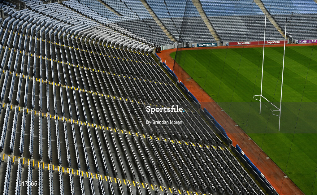 16 August 2020; Rows of empty seats in the Canal End stand in Croke Park Stadium on the original scheduled date of the 2020 GAA Hurling All-Ireland Senior Championship Final. Due to current restrictions laid down by the Irish government to prevent the spread of coronavirus, the dates for the staging of the GAA inter-county season have been pushed back, with the first round of games now due to start in October. The 2020 All-Ireland Senior Hurling Championship was due to be the 133rd staging of the All-Ireland Senior Hurling Championship, the Gaelic Athletic Association's premier inter-county hurling tournament, since its establishment in 1887. For the first time in 96 years the All-Ireland hurling final is now due to be played in December with the 2020 final due on Sunday, December 13th, the same weekend on which Dublin beat Galway in the 1924 final. Photo by Brendan Moran/Sportsfile