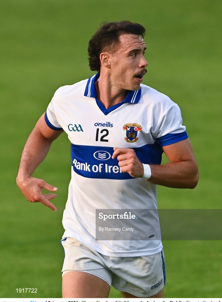 15 August 2020; Shane Carthy of St Vincent's during the Dublin County Senior 1 Football Championship Group 3 Round 3 match between Clontarf and St. Vincent's at Parnell Park in Dublin. Photo by Ramsey Cardy/Sportsfile
