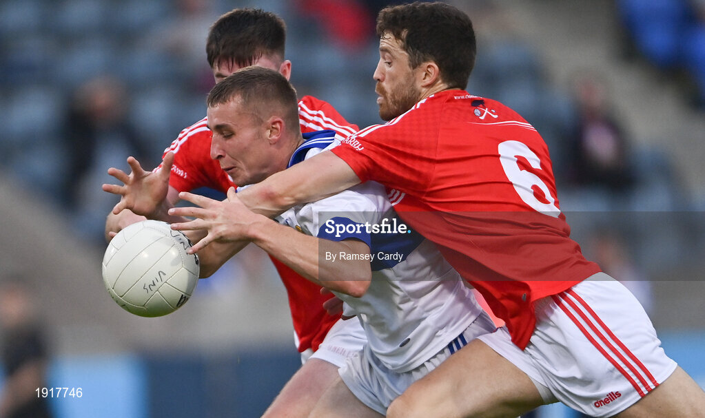 15 August 2020; Greg Murphy of St Vincent's is tackled by Chris Barrett of Clontarf during the Dublin County Senior 1 Football Championship Group 3 Round 3 match between Clontarf and St. Vincent's at Parnell Park in Dublin. Photo by Ramsey Cardy/Sportsfile
