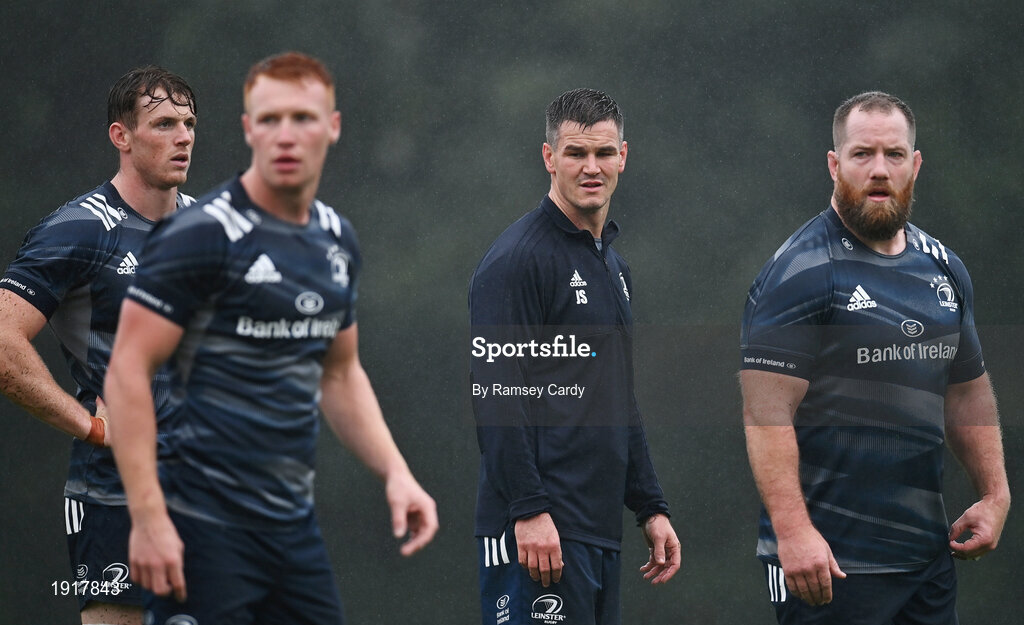 17 August 2020; Players, from left, Ryan Baird, Ciarán Frawley, Jonathan Sexton and Michael Bent during Leinster Rugby squad training at UCD in Dublin. Photo by Ramsey Cardy/Sportsfile