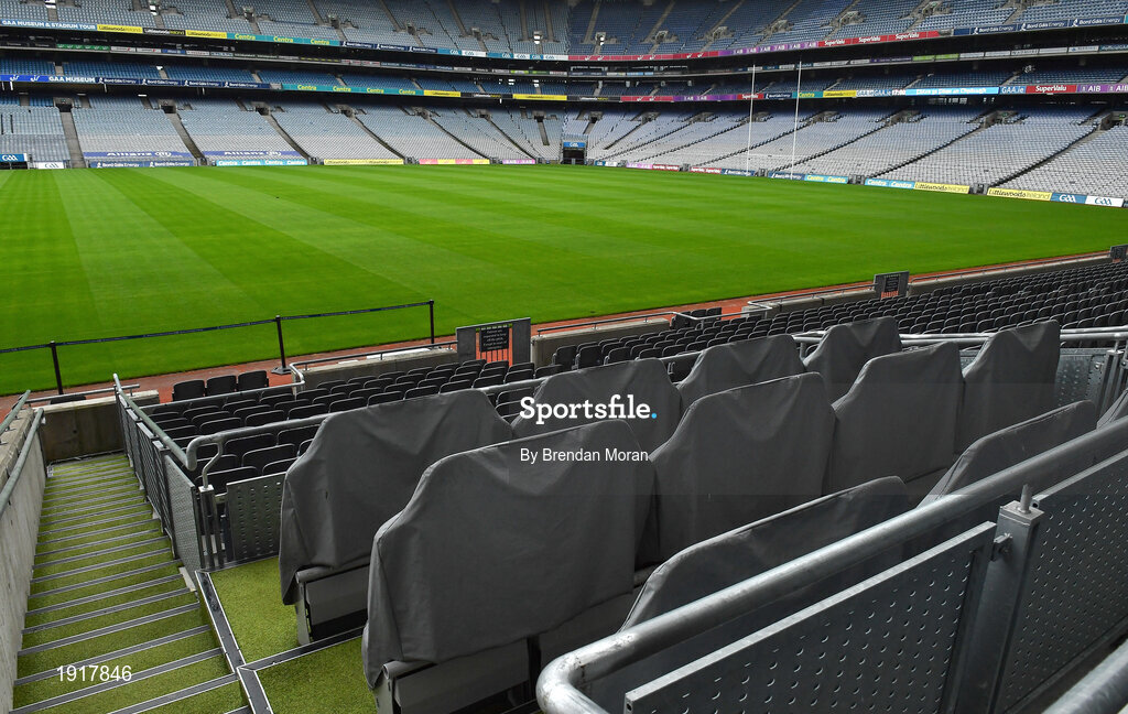 16 August 2020; Team substitutes seating at 5pm in an empty Croke Park Stadium on the original scheduled date of the 2020 GAA Hurling All-Ireland Senior Championship Final. Due to current restrictions laid down by the Irish government to prevent the spread of coronavirus, the dates for the staging of the GAA inter-county season have been pushed back, with the first round of games now due to start in October. The 2020 All-Ireland Senior Hurling Championship was due to be the 133rd staging of the All-Ireland Senior Hurling Championship, the Gaelic Athletic Association's premier inter-county hurling tournament, since its establishment in 1887. For the first time in 96 years the All-Ireland hurling final is now due to be played in December with the 2020 final due on Sunday, December 13th, the same weekend on which Dublin beat Galway in the 1924 final. Photo by Brendan Moran/Sportsfile