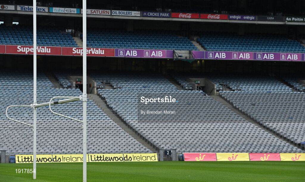 16 August 2020; An empty Croke Park Stadium on the original scheduled date of the 2020 GAA Hurling All-Ireland Senior Championship Final. Due to current restrictions laid down by the Irish government to prevent the spread of coronavirus, the dates for the staging of the GAA inter-county season have been pushed back, with the first round of games now due to start in October. The 2020 All-Ireland Senior Hurling Championship was due to be the 133rd staging of the All-Ireland Senior Hurling Championship, the Gaelic Athletic Association's premier inter-county hurling tournament, since its establishment in 1887. For the first time in 96 years the All-Ireland hurling final is now due to be played in December with the 2020 final due on Sunday, December 13th, the same weekend on which Dublin beat Galway in the 1924 final. Photo by Brendan Moran/Sportsfile
