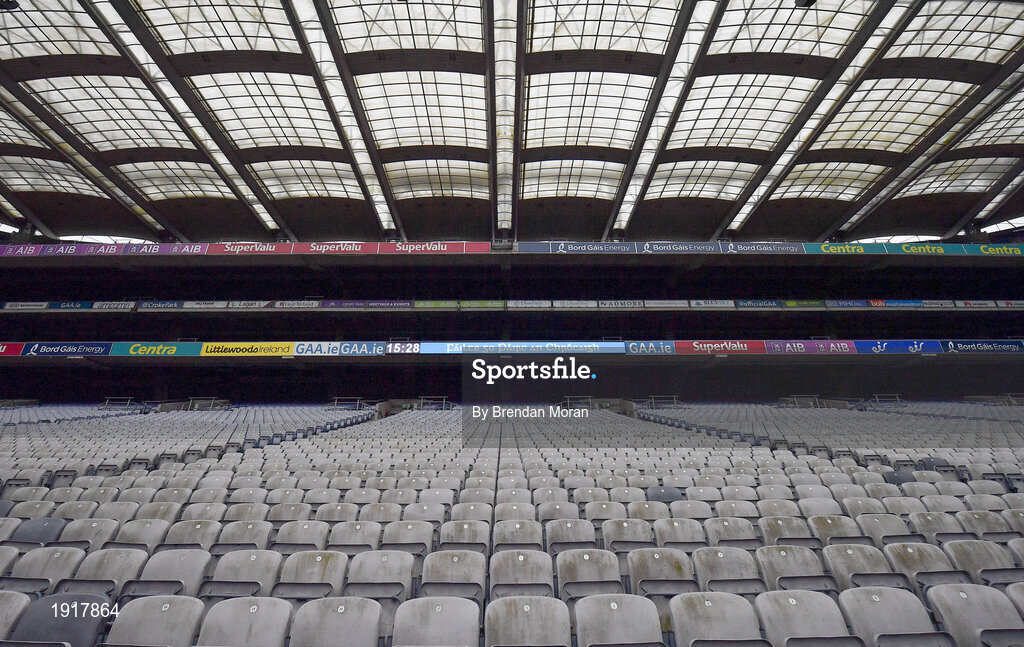 16 August 2020; An empty Canal End in Croke Park Stadium at 3.28pm during what would be the playing of Amhrán na bhFiann on the original scheduled date of the 2020 GAA Hurling All-Ireland Senior Championship Final. Due to current restrictions laid down by the Irish government to prevent the spread of coronavirus, the dates for the staging of the GAA inter-county season have been pushed back, with the first round of games now due to start in October. The 2020 All-Ireland Senior Hurling Championship was due to be the 133rd staging of the All-Ireland Senior Hurling Championship, the Gaelic Athletic Association's premier inter-county hurling tournament, since its establishment in 1887. For the first time in 96 years the All-Ireland hurling final is now due to be played in December with the 2020 final due on Sunday, December 13th, the same weekend on which Dublin beat Galway in the 1924 final. Photo by Brendan Moran/Sportsfile