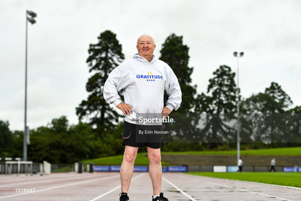 18 August 2020; Frank Greally, who fifty years ago today set a 10,000 metres National Junior record of 30:17, at the launch of 'Gratitude Road', a walk from Ballyhaunis in Mayo, via the Coombe Women & Infants University Hospital, to The Morton Stadium in Santry, Dublin. Photo by Eóin Noonan/Sportsfile