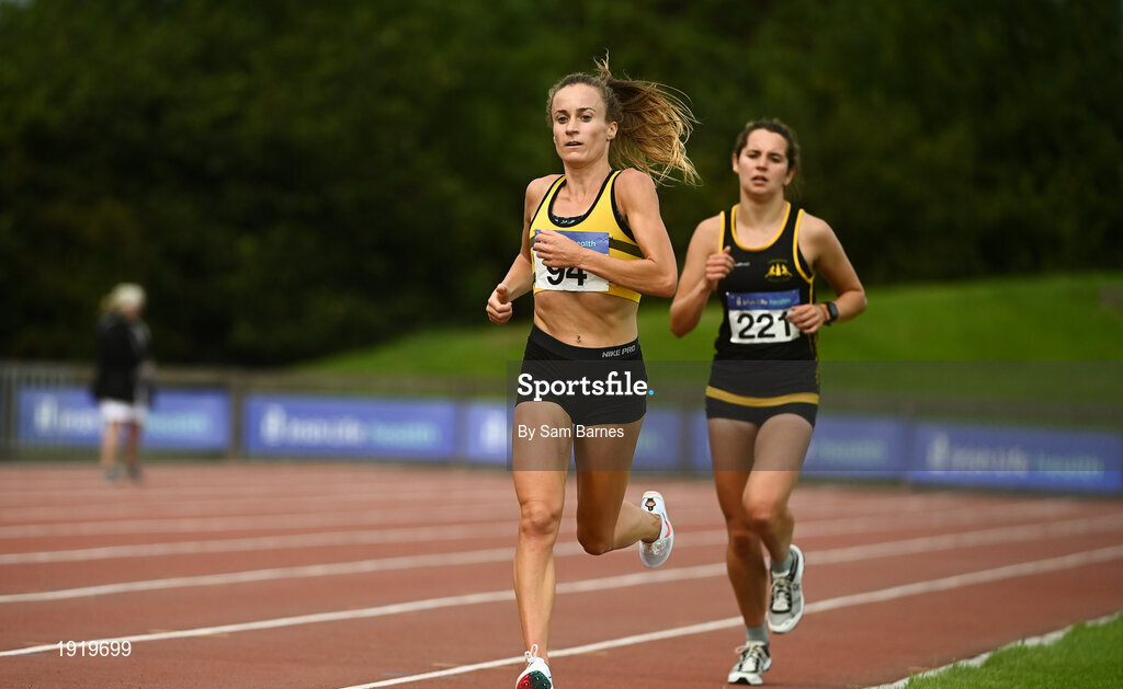 22 August 2020; Michelle Finn of Leevale AC, Cork, on her way to winning the Women's 5000m during Day One of the Irish Life Health National Senior and U23 Athletics Championships at Morton Stadium in Santry, Dublin. Photo by Sam Barnes/Sportsfile