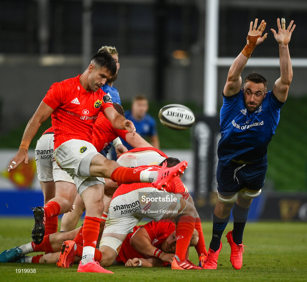 22 August 2020; Conor Murray of Munster in action against Jack Conan of Leinster during the Guinness PRO14 Round 14 match between Leinster and Munster at the Aviva Stadium in Dublin. Photo by David Fitzgerald/Sportsfile