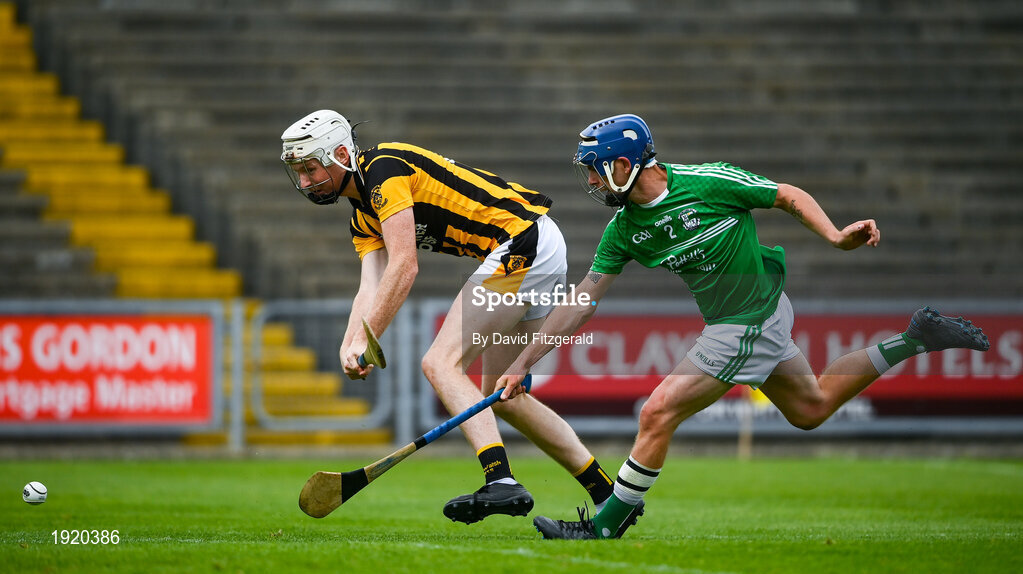 23 August 2020; Sean Keane Carroll of Shelmaliers shoots to score his side's third goal despite Pedro Travers of Naomh Éanna during the Wexford County Senior Hurling Championship Final match between Shelmaliers and Naomh Éanna at Chadwicks Wexford Park in Wexford. Photo by David Fitzgerald/Sportsfile