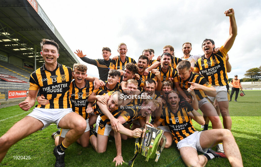 23 August 2020; Shelmaliers players celebrate with the cup following the Wexford County Senior Hurling Championship Final match between Shelmaliers and Naomh Éanna at Chadwicks Wexford Park in Wexford. Photo by David Fitzgerald/Sportsfile