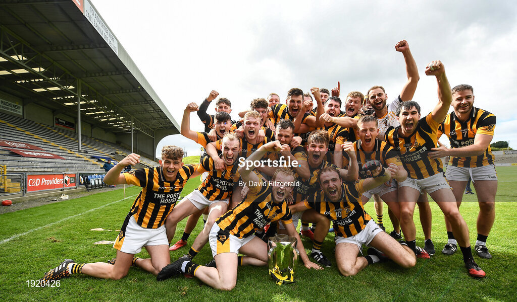 23 August 2020; Shelmaliers players celebrate with the cup following the Wexford County Senior Hurling Championship Final match between Shelmaliers and Naomh Éanna at Chadwicks Wexford Park in Wexford. Photo by David Fitzgerald/Sportsfile