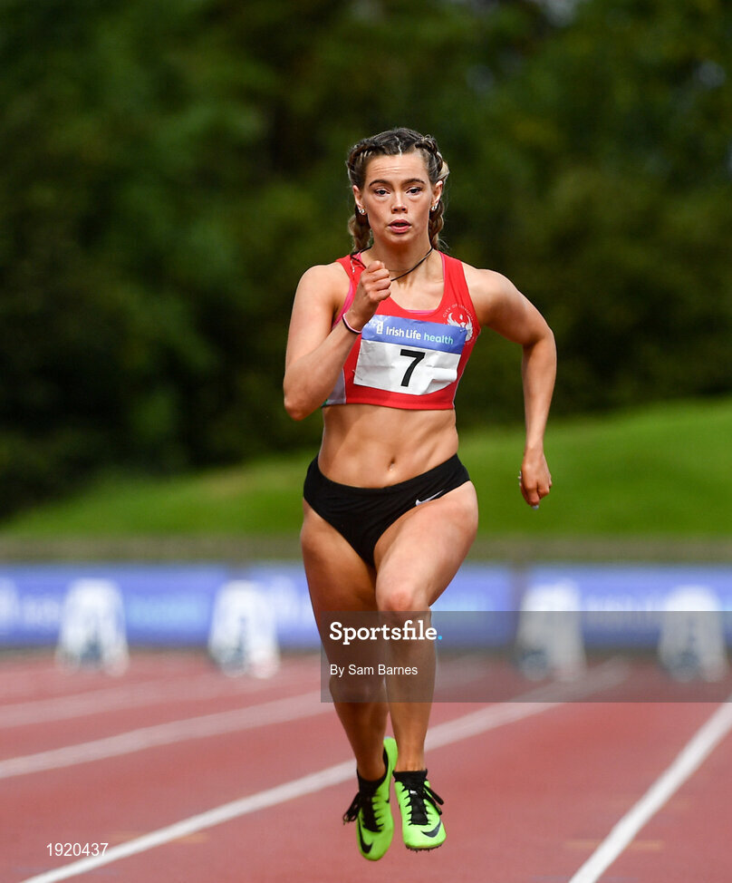 23 August 2020; Lauren Roy of City of Lisburn AC, Down, competing in the Women's 100m heats during Day Two of the Irish Life Health National Senior and U23 Athletics Championships at Morton Stadium in Santry, Dublin. Photo by Sam Barnes/Sportsfile
