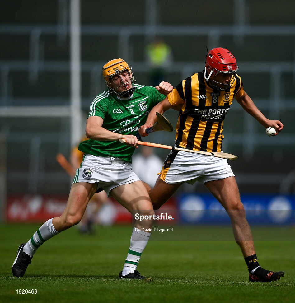 23 August 2020; Conor Hearne of Shelmaliers in action against Aodhan Doyle of Naomh Éanna during the Wexford County Senior Hurling Championship Final match between Shelmaliers and Naomh Éanna at Chadwicks Wexford Park in Wexford. Photo by David Fitzgerald/Sportsfile