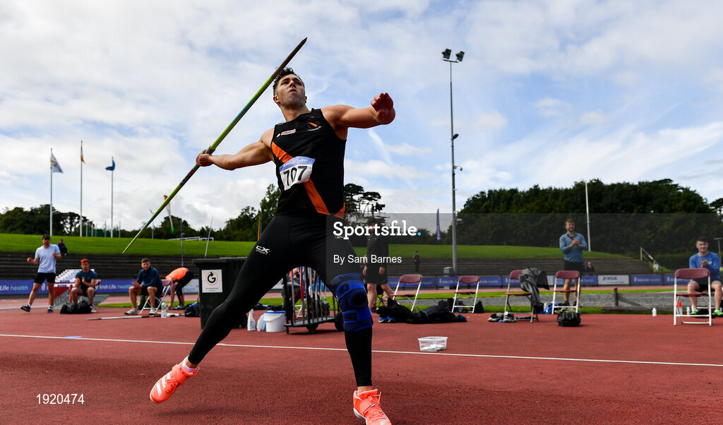 23 August 2020; Stephen Rice of Clonliffe Harriers AC, Dublin, on his way to winning the Men's Javelin during Day Two of the Irish Life Health National Senior and U23 Athletics Championships at Morton Stadium in Santry, Dublin. Photo by Sam Barnes/Sportsfile