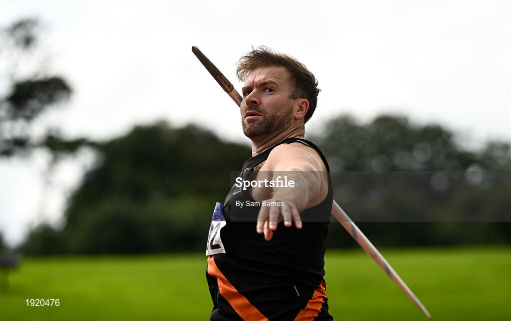 23 August 2020; Rory Gunning of Clonliffe Harriers AC, Dublin, on his way to finishing third in the Men's Javelin during Day Two of the Irish Life Health National Senior and U23 Athletics Championships at Morton Stadium in Santry, Dublin. Photo by Sam Barnes/Sportsfile