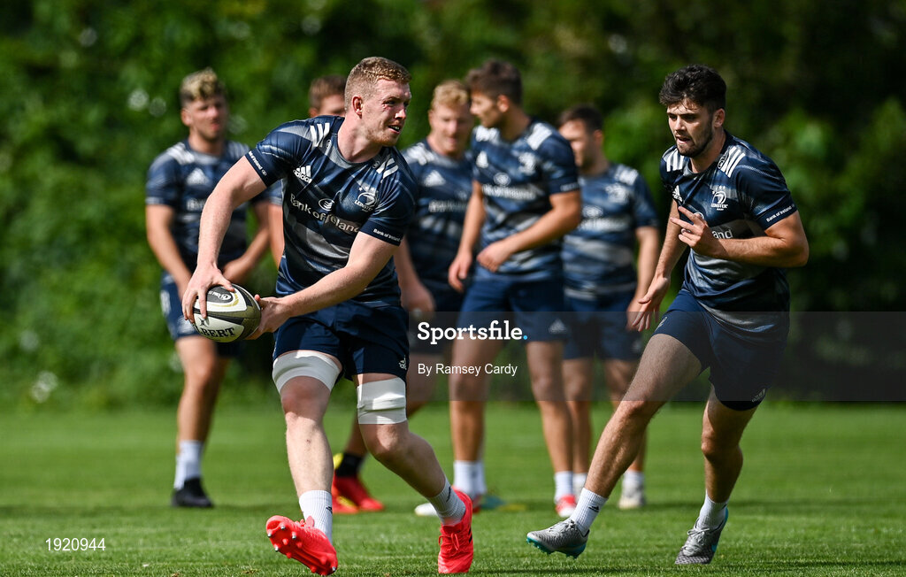 24 August 2020; Dan Leavy, left, and Harry Byrne during Leinster Rugby squad training at UCD in Dublin. Photo by Ramsey Cardy/Sportsfile