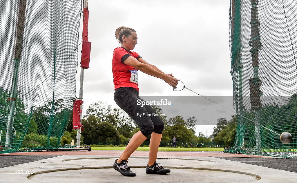 22 August 2020; Laura Cunningham of Father Murphy AC, Meath, competing in the Women's Hammer during Day One of the Irish Life Health National Senior and U23 Athletics Championships at Morton Stadium in Santry, Dublin. Photo by Sam Barnes/Sportsfile