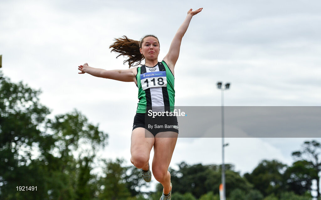 22 August 2020; Lydia Mills of Ballymena and Antrim AC, competing in the Women's Long Jump competing in the Women's Long Jump during Day One of the Irish Life Health National Senior and U23 Athletics Championships at Morton Stadium in Santry, Dublin. Photo by Sam Barnes/Sportsfile