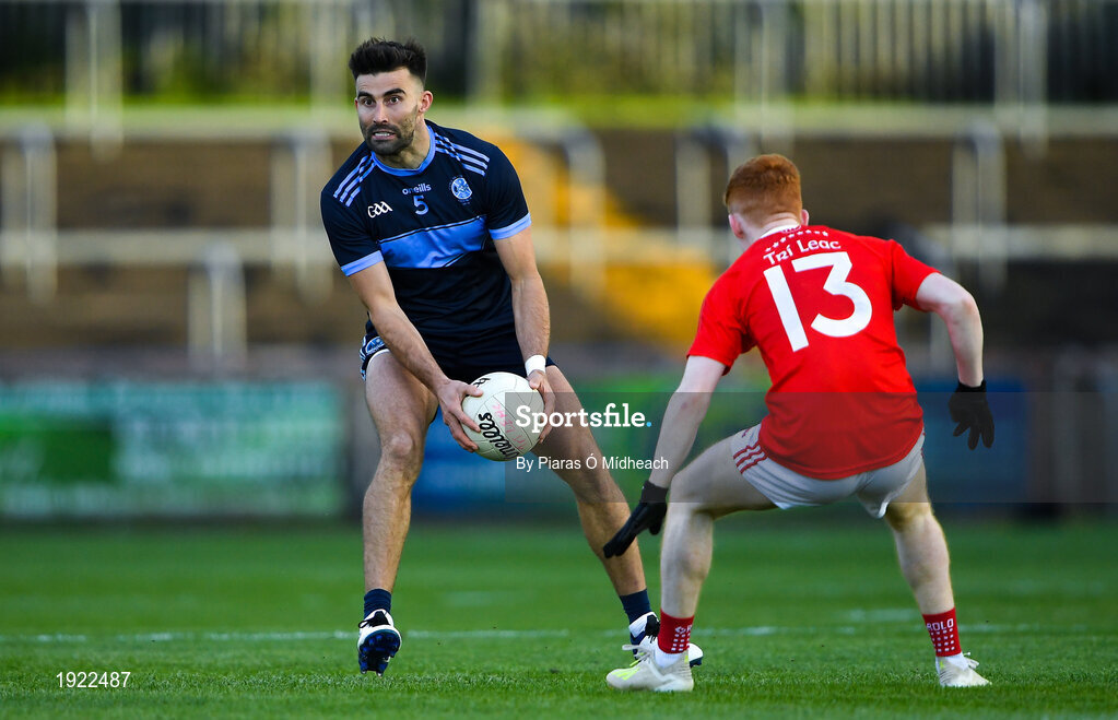 28 August 2020; Tiernan McCann of Killyclogher in action against James Garrity of Trillick during the Tyrone County Senior Football Championship Quarter-Final match between Trillick St Macartan's and Killyclogher St Mary's at Healy Park in Omagh, Tyrone. Photo by Piaras Ó Mídheach/Sportsfile