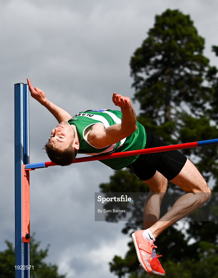 23 August 2020; David Cussen of Old Abbey AC, Cork, competing in the Men's High Jump during Day Two of the Irish Life Health National Senior and U23 Athletics Championships at Morton Stadium in Santry, Dublin. Photo by Sam Barnes/Sportsfile